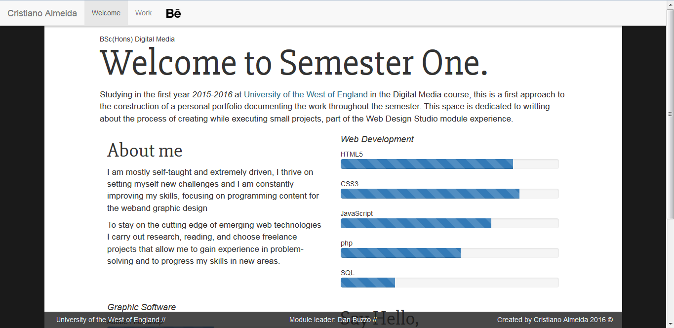 The main goal of learning HOTGLUE was to create a portfolio. In order to get to know this tool in depth, experiments were made and questions regarding its development were raised: Is there a way to make HOTGLUE responsive? Does it break if scripts are used?